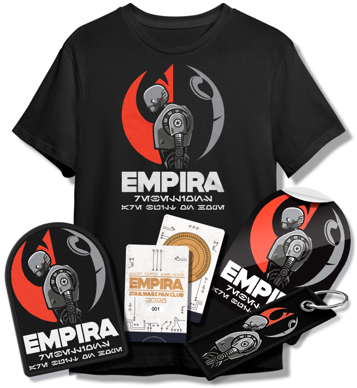 La tessera soci 2026 è il cuore identitario del kit. Stampata su materiale rigido, con finitura lucida e dettagli in stile circuito galattico, rappresenta il tuo status di membro attivo e riconosciuto del fan club. Include il logo EMPIRA, l’anno 2026, il numero identificativo e una grafica in Aurebesh, il sistema di scrittura dell’universo Star Wars, per un tocco autentico e immersivo.